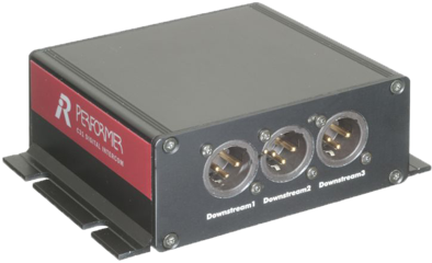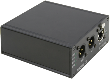 可将一路XLR3输入信号分成三路XLR3信号输出。可使用群组系统供电,在长距离走线时亦可使用外接电源供电。