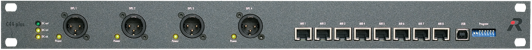 19寸1RU,将4路双通道CAT5矩阵端口转化为4路带幻象供电的腰包线路信号。腰包使用标准三针XLR插头与C44plus相连。每条线路最多可以菊花链的形式连接16只腰包:一台C44plus能够为38只腰包供电。内置了24x24路的内通矩阵,可通过Riedel的音频分配软件进行设置。